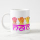 I was looking for a cheerful, vibrantly coloured, fun, extra large , MCM designed mug for my first coffee of the day. This fits the bill! The print is purrfect and the colours are SO vibrant. The design definitely gives a true MCM vibe. The placement of the art is the only negative for me. I would prefer the main image be on opposite sides of the mug, rather than placed so close together, and not able to be seen by the drinker (me!) or the person opposite me (if there is one :-).