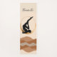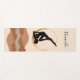 Namaste. Black silhouette yoga pose on a gold crescent moon above a modern abstract neutral mountains background. Black text in a modern handwritten font says Namaste or it can be personalized with your own text.