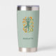 Stay grounded and hydrated wherever you go with this Retro Yoga Lover Tumbler. Featuring a calming yoga pose surrounded by colourful 70s-inspired swirls in sage green, orange, and gold, this design radiates mindfulness and positive energy. Sage green background.