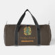 Yoga pose retro swirls name slogan taupe brown duffle bag