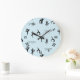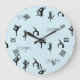 Yoga poses and text pattern on blue large clock