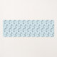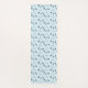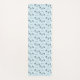 Yoga poses and text pattern on blue mat