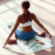 This design features yoga positions in brown and light green on a light blue background and customizable name.