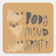 Three adorable pugs in various yoga poses with "Body, Mind, Spirit" text