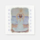 Avoir une fête de Yoga ? Eh bien, cette image est parfaite pour coordonner tout ce dont vous avez besoin - des invitations, des timbres et des RSVP, à tous vos besoins de divertissement... Une aquarelle peinte d'une belle et pleine d'esprit en blanc faisant une méditation de yoga sur une plage de sable face à un océan bleu tranquille alors que la lueur du soleil se lève dans un ciel bleu. Votre soirée Première Classe sera non seulement impressionnante mais amusante et joyeuse - Peinture originale de la designer Sue Chorney, www.fancifulwatercolors.ca