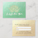 Yoga Studio Meditation Instructor / Life Coach / Healer / Reiki Master / Massage Therapy Gift Certificate Card Template - Modern Elegant Faux Gold Foil Lotus on Green Gold Texture Background.