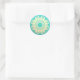 YOGA Studio Meditation Instructor Sticker Template - Elegant Faux Gold Foil Floral Mandala Symbols on Teal Green and Turquoise Blue Background.