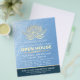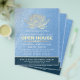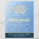 Yoga Studio Meditation Instructor / Life Coach / Healer / Reiki Master / Massage Therapy Open House Flyer Template - Modern Elegant Faux Gold Foil Lotus on Blue Gold Texture Background.