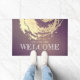 Yoga Studio Meditation Instructor Welcome Doormat Templates - Elegant Faux Gold Foil Brushstrokes ZEN Symbol on Magenta Purple Background.