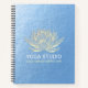 Yoga Studio Meditation Instructor / Life Coach / Healer / Reiki Master / Massage Therapy Notebook Template - Modern Elegant Faux Gold Foil Lotus on Blue Gold Texture Background.