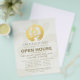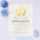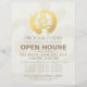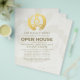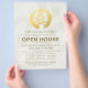 Yoga Studio Meditation Instructor / Life Coach / Healer / Reiki Master / Massage Therapy Open House Flyer Template - Elegant Calligraphy Faux Gold Foil Yoga Meditation Easy Pose / Sukhasana Pose with ZEN Symbol on OM Symbol White Paper Background.
