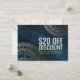 Studio Fitness Yoga / Méditation Instructeur / Personal Trainer / Life Coach / Healer / Reiki Master / Massage Thérapie Coupon Fidélité / Cadeau Certificat Modèles - Moderne Chic Faux Gold Foil Symboles Mandala Floral sur Marine Blue Wave Motif Arrière - plan.