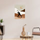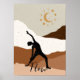 Black silhouette meditation yoga warrior pose stretch against abstract mountains and a gold moon and moon phases. In a modern black and grey and brown neutrals to blend with any home decor. Flow in a modern script font can be customized.
