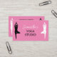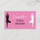 Yoga workshop business card template design with pose logo. Customizable colours. Pink example. Professional layout with modern typography. Customizable colours and typography. Ideal for yoga studio teacher, pilates instructor, personal trainer, sports coach, gym trainer, meditation, mindfulness, spiritual teachings, healer, beauty salon and more. Create standard visit cards for self employed person, starting boss, employees, co workers, partners, manager, friends, family, customers, guests etc. Add your own unique address information and job title. Double sided print. Custom office supplies for beginning a new company. Choose from different paper qualities, thickness and styles. Printing with glossy or matte finish. Change quantity to get the cheap low bulk pack prices. Calm tree pose silhouette.