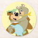 Yogi Bear Carrying Cindy Bear Round Paper Coaster