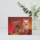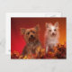 Yorkie and Friends Postcards--cute Yorkshire terrier and her Yorkie mix friend surrounded by autumn leaves.