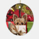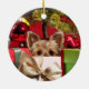 Yorkie, or Yorkshire terrier, dog hiding among the Christmas presents, possibly hoping for a glimpse of Santa Claus dog lovers Christmas holiday ornament