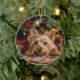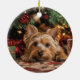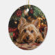 This adorable Christmas ornament, featuring a Yorkshire Terrier lying under a Christmas tree, is a wonderful gift for any Yorkie lover.