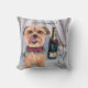 Coussin avec l'adorable Yorkie Terrier attendant de vous aider à célébrer tout ce qu'il a apporté le Champagne.