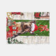 Yorkie Dog Christmas sitting outside decorated home with Christmas wreath, Christmas tree is a perfect Christmas gift idea for dog lovers.