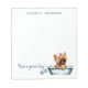Cute dog watercolor illustration of a happy Yorkie dog in a bathtub. Great for dog lovers. Ready to be personalized with your name on top and the bottom says "Have a great day!" which can be changed if you want. Great for dog lovers, poodle owners, dog groomers, dog sitters, and veterinarians.