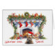 The front of this Christmas greeting card has an image of an adorable little Yorkshire Terrier dog wearing a red and white Santa hat. The dog sits in front of a decorated fireplace, expectantly waiting for Santa Claus. The red text at the bottom says "Waiting for Santa". The text is customizable, as is all the inside text, so you may make it say whatever you'd like. Cute! See more Yorkie images, along with dozens of other dog breed products, at Dog Village.