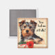 Featuring an adorable Yorkie puppy posing in front of a red rose.