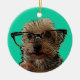 Yorkie with Glasses Ceramic Ornament