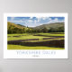 Vintage Railway style poster featuring stone walls at Muker, Swaledale, Yorkshire Dales, England.