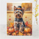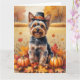 Yorkshire Terrier Autumn Leaves Thanksgiving Art Card
