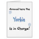 We all know who is in charge at your house. With this fun dog design on assorted apparel and office supplies you can show the world that around here the Yorkshire Terrier is in charge.