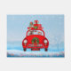 Yorkshire Terrier Dog In Car With Santa Claus Doormat