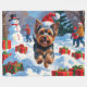 A lively Yorkshire Terrier bounds through the snow, wearing a bright red Christmas hat with joyful holiday spirit. This festive winter scene highlights the playful charm and elegance of the Yorkie, surrounded by the magic of the season. A heartwarming design that captures both the beauty of winter and the personality of this beloved small breed.