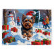 A lively Yorkshire Terrier bounds through the snow, wearing a bright red Christmas hat with joyful holiday spirit. This festive winter scene highlights the playful charm and elegance of the Yorkie, surrounded by the magic of the season. A heartwarming design that captures both the beauty of winter and the personality of this beloved small breed.