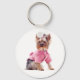 Diva Yorkshire Terrier Puppy Dog in Pink Coat on White Background Keychain