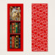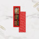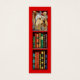 I WUFF to Read! is on the back side of this book mark while a sweet Yorkshire Terrier with a red bow pokes his head through a bookshelf with books on the front.