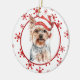 Yorkshire Terrier Santa Hat Red Snowflake Ceramic Ornament