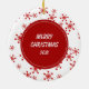 On the front of this Holiday ornament is a beautiful watercolor image of a Yorkshire Terrier wearing a red and white striped Santa hat. The image is placed on a white circle framed by a retro red snowflake pattern. The back of the ornament has the same background and circle with your custom text in white on a matching red background. Cute, especially for someone who loves a Yorkie.