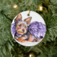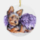 Sweet little Yorkshire Terrier resting on a cloud has purple feathery wings. Yorkie Angel will bring a smile to anyone's face any time of the year!