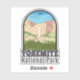 Yosemite vector artwork design. The park is famed for its giant, ancient sequoia trees, and for Tunnel View, the iconic vista of towering Bridalveil Fall and the granite cliffs of El Capitan and Half Dome.