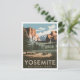 A majestic and nostalgic depiction of Yosemite National Park, renowned for its towering granite cliffs, dramatic waterfalls, and ancient giant sequoias. The design captures iconic landmarks such as El Capitan, Half Dome, and Yosemite Falls, framed by lush forests and expansive meadows. Rendered in a vintage style, the artwork evokes the awe-inspiring beauty and natural serenity of Yosemite, inviting viewers to explore its trails, wildlife, and breathtaking landscapes.