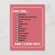 A humourous multiple choice card that lets you tell them just how much you love them and why! Choose from romantic compliments, to dubious complaints- just make sure you tick the right boxes for the one you love!