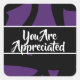 You Are Appreciated Modern Purple Black Thank You Square Sticker