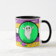 Halloween themed coffee mug with hand drawn ghost, candy corn, candy purple, lime green and orange Autumn Mug.