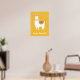 This fun poster features and adorable white llama dressed up in shades of pink, turquoise and yellow on a matching golden yellow background. Makes a great gift for any age from nursery to dorm room to office!