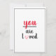 A casual "you are loved" card. Red and black appreciation card that you can make personal with a nice gesture from anyone. Just use the "personalize this template feature" to edit the text to make it your own. Other paper styles available.