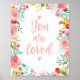Cute "You are Loved" nursery art print with pretty pink and peach flowers.