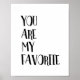 A sweet and whimsical typography quote art print that says You Are My Favourite in a modern black and white design.
