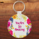 You Are So Amazing Watercolor Floral Round Keychain.
