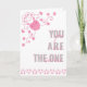 Valentine's Day card with modern typography and borders of love hearts. The front of the card is lettered with "you are the one" in a blend of modern oversized print and casual script. Inside reads "happy valentine's day" and you are welcome edit this to suit a different occasion if you wish.